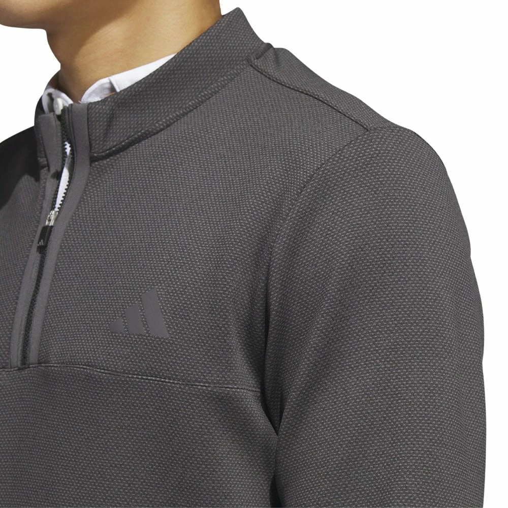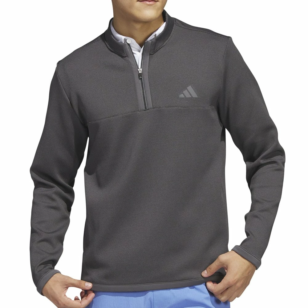 The pullover is complete with a ¼ zip design for easy layering and front pockets for small valuables.