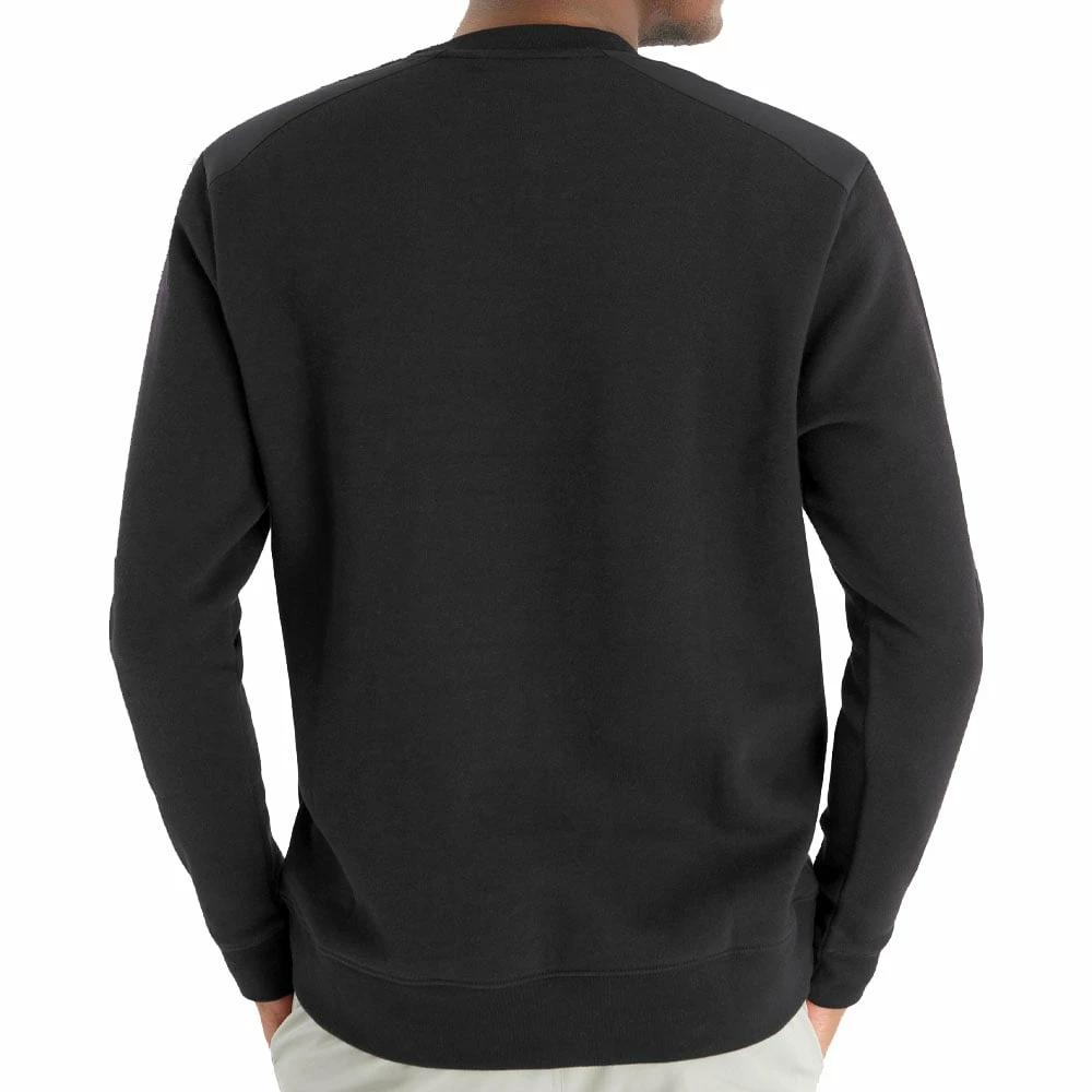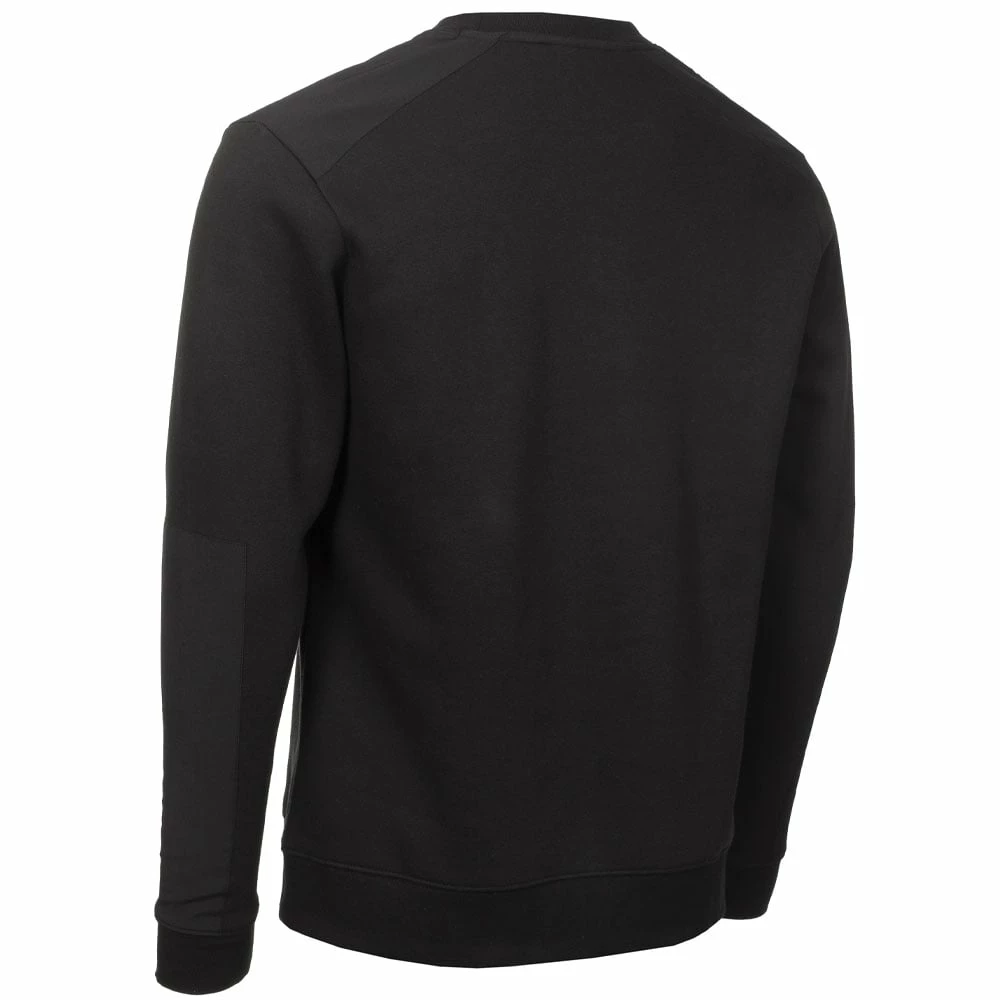 The rib knit crew neck sits neatly over your favourite polo and the microfibre panels on the shoulders and the elbows adds style points.