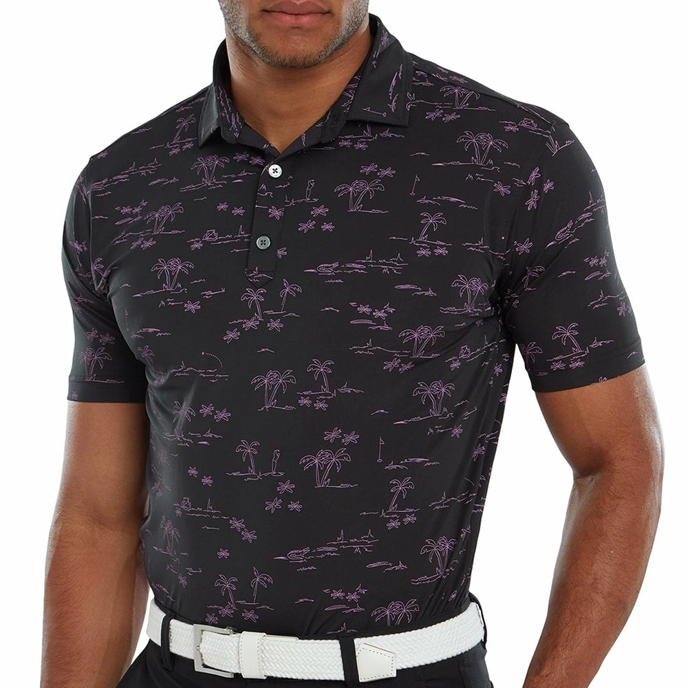 The FootJoy Tropic Print Polo Shirt is made from FJ’s ProDry lightweight stretch lisle fabric which is soft against the skin and provides complete freedom of movement.