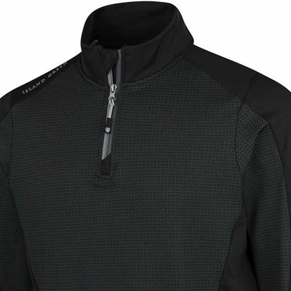 The bold colours, ¼ zip neck, with a tonal print design across the torso creates a classic yet modern look, along with the Island Green logo on the sleeve and on the back elevates the look for a garment suitable for any occasion.