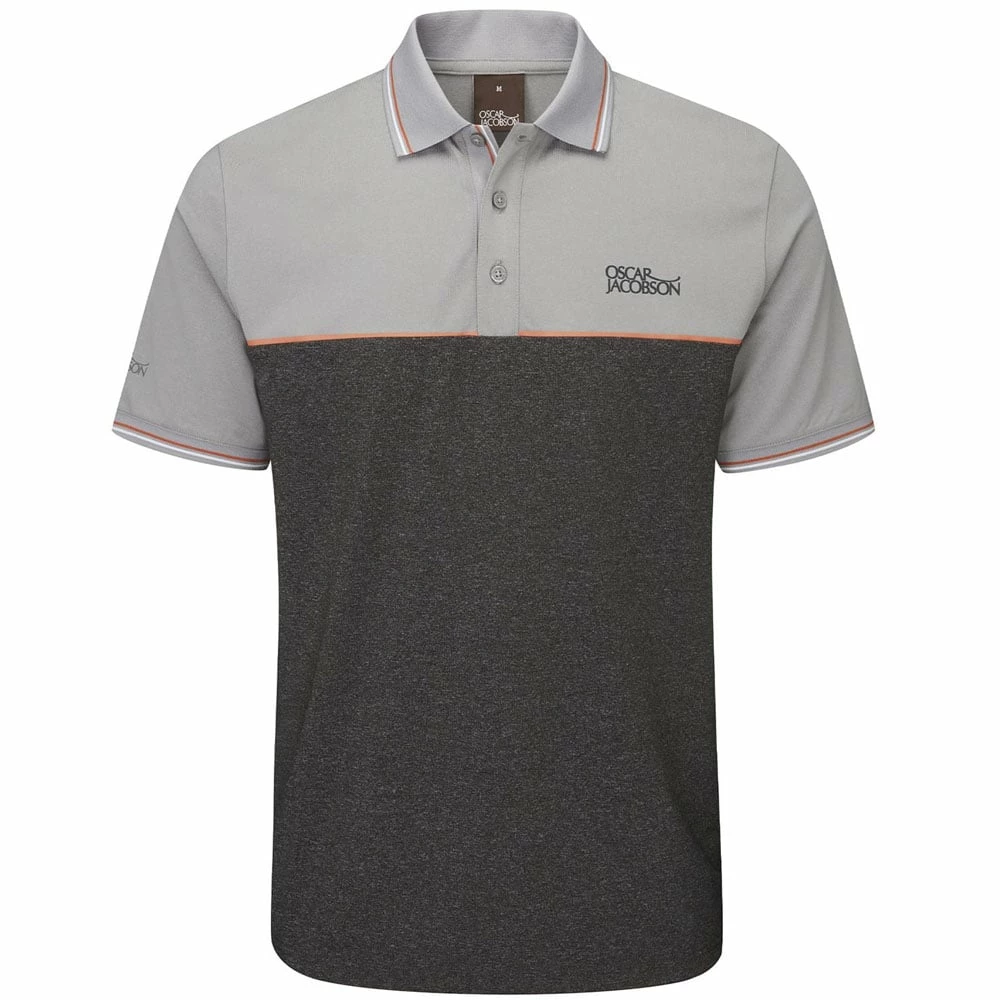 The polo features a stylish melange effect across the bottom of the shirt and an engineered chest stripe with contrasting piping on the collar and sleeve endings.