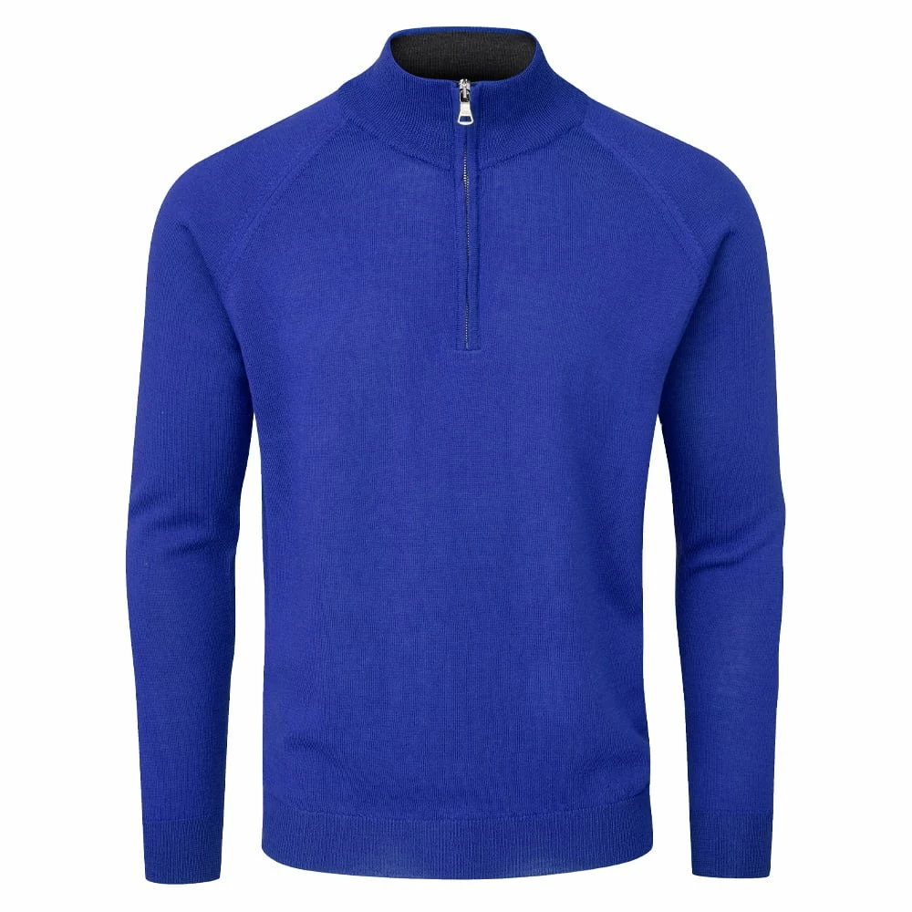 The Oscar Jacobson Warwick Sweater is a lightweight zip-neck sweater designed to give extreme comfort and added warmth. The sweater is designed with high quality Italian merino wool that feels soft on the skin giving great levels of comfort while keeping you warm. Used as a outer layer or mid-layer this sweater looks and feels fantastic on or off the golf course.