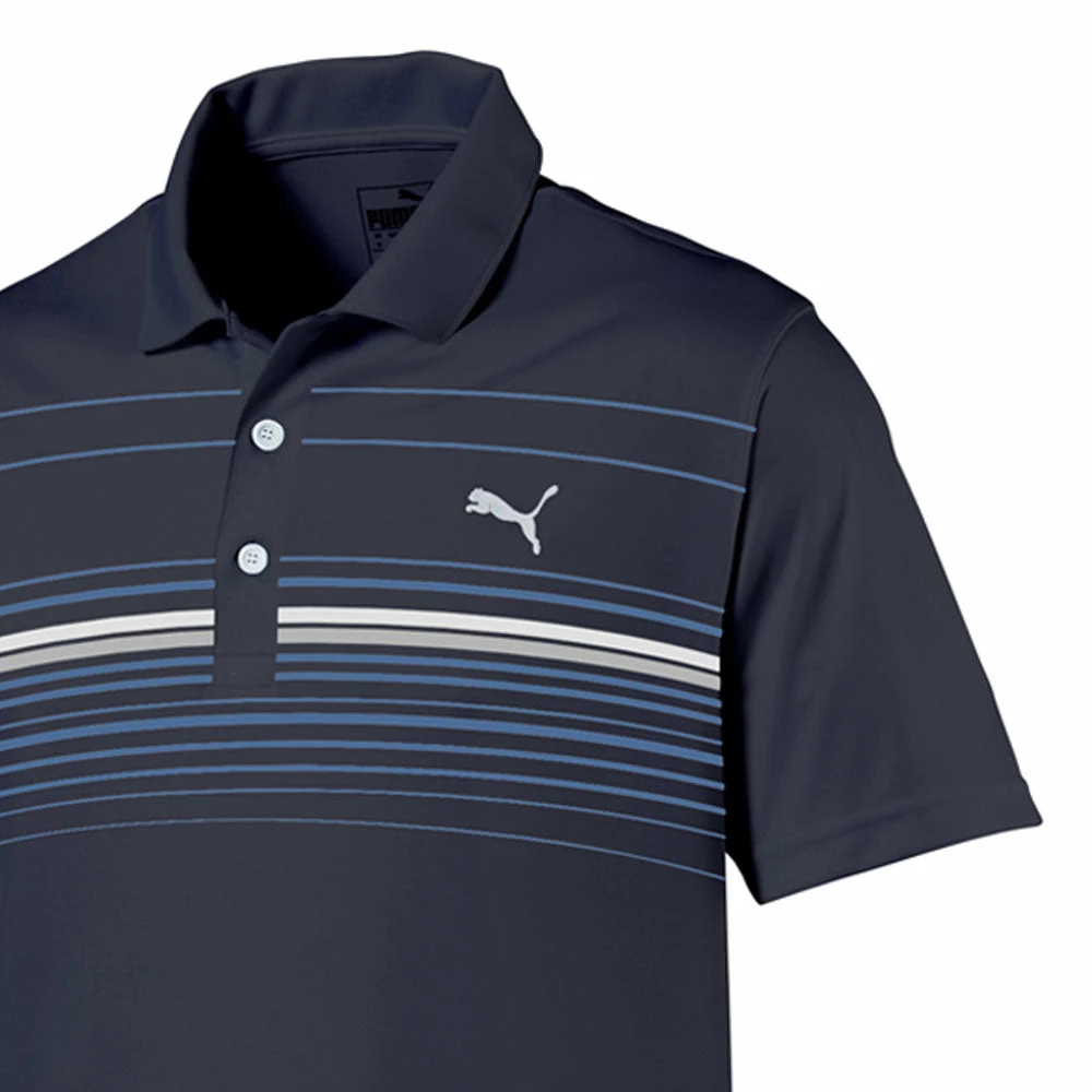 Containing recycled fibres, the shirt is one of Puma’s answers to reduce our environmental impact. The polo is finished with a 3-button placket and Puma Cat logo on the chest.